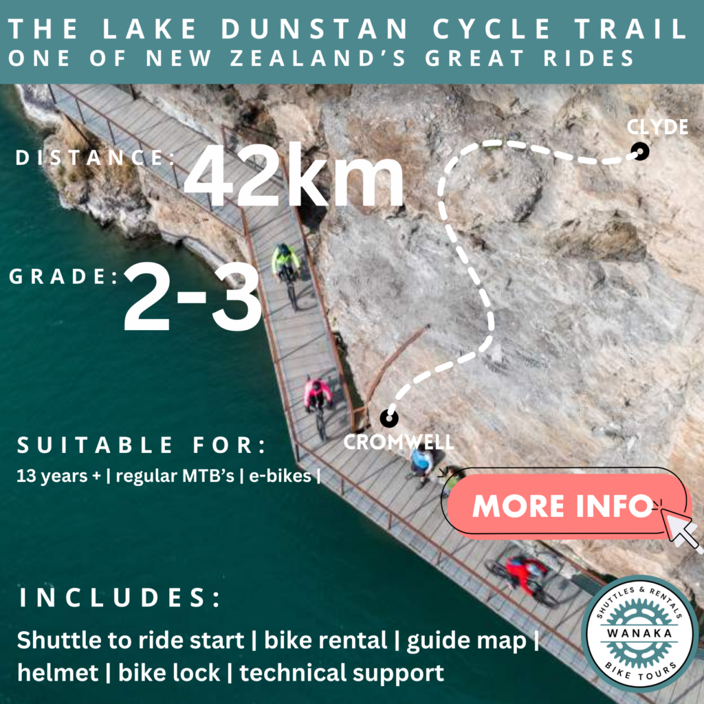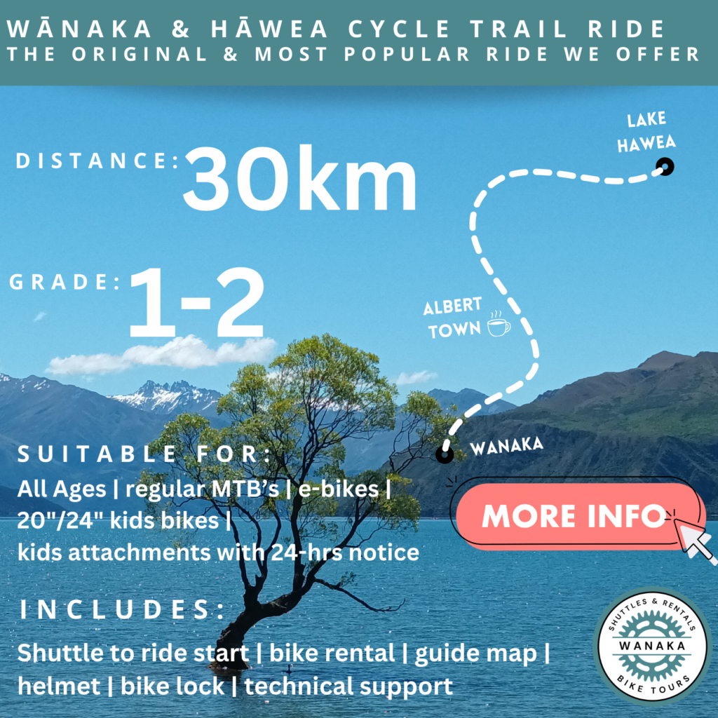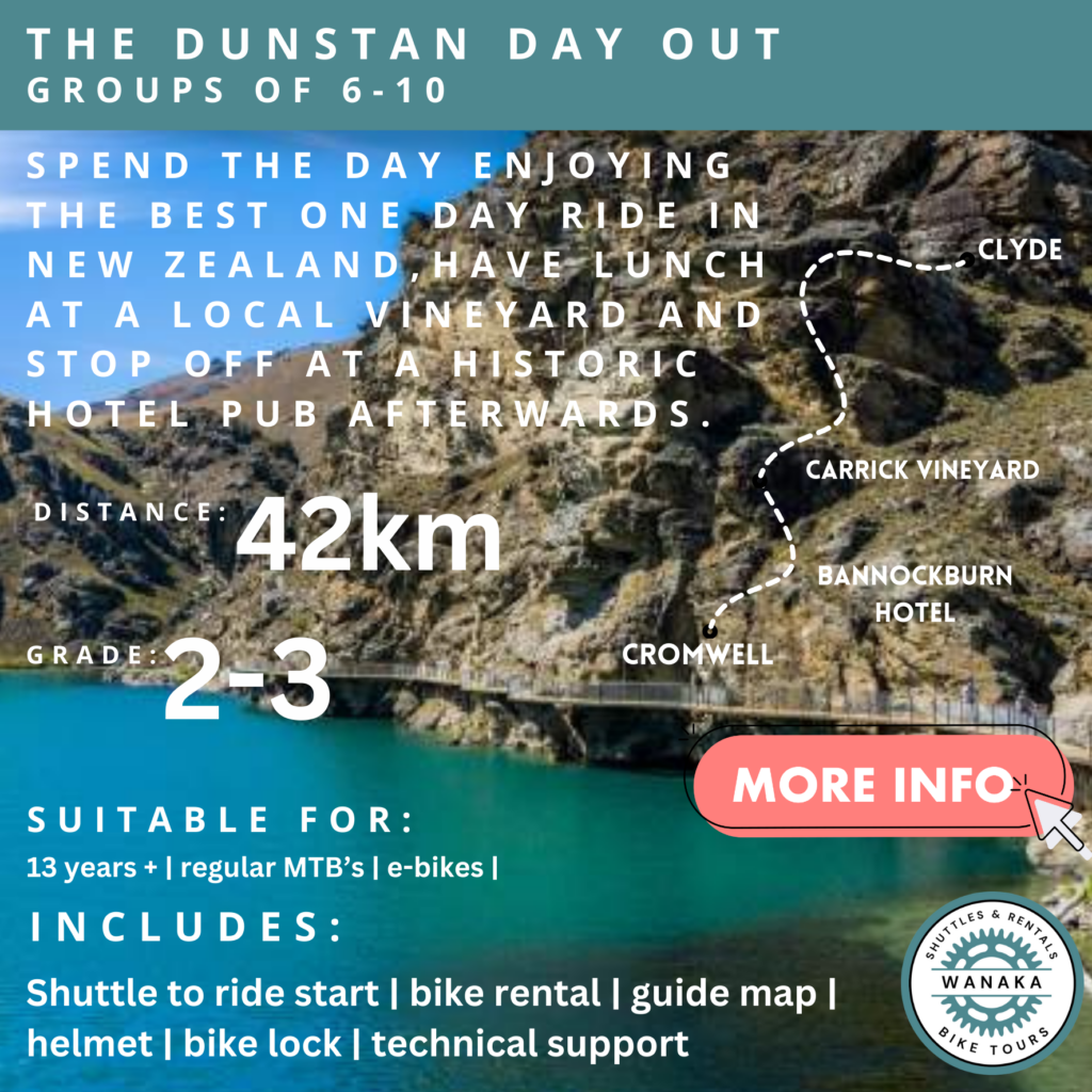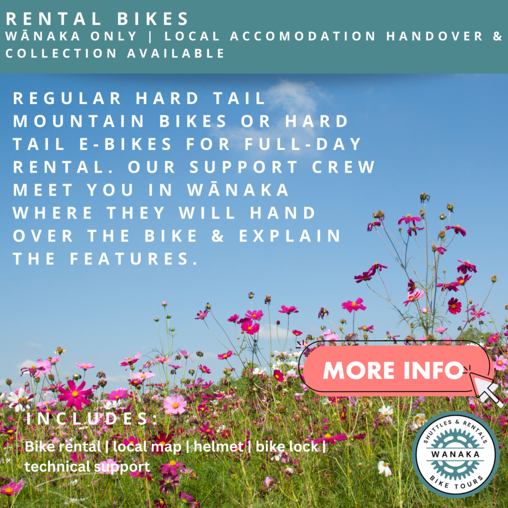 Wanaka Bike Tours offer a range of Self-Guided Mountain Bike Shuttles and Bike Rentals for the Wanaka, Hawea, Albert Town and Lake Dunstan areas. Our aim is to provide mountain biking options for all budgets and abilities so you can explore some of our local bike trails and enjoy some breathtaking scenery. Ride at your own pace with Wanaka Bike Tours, see below the range of different biking options available: