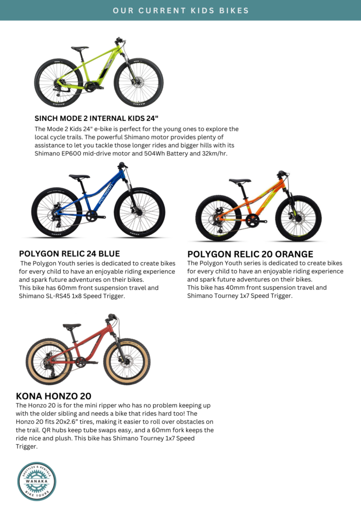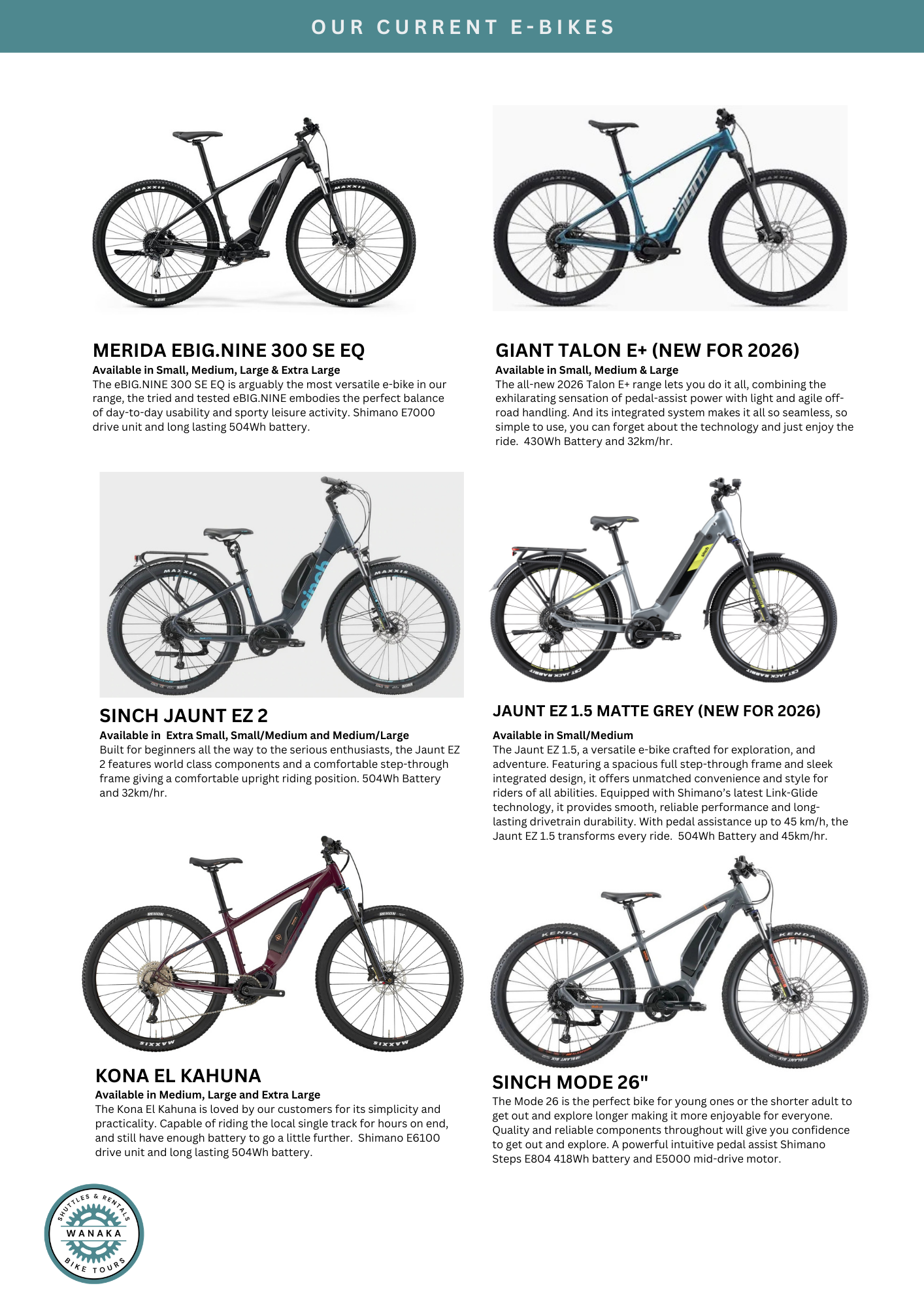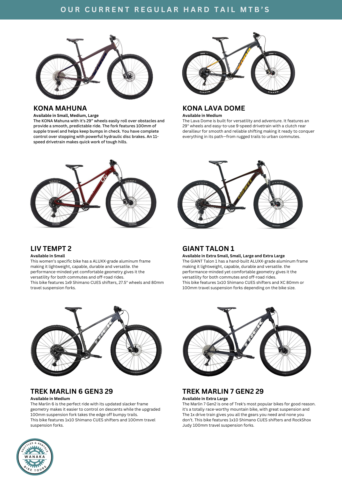 At Wanaka Bikes Tours we are continually upgrading our fleet of bikes . We also use the services of a local experienced ex. pro-team bike mechanic to regularly maintain our bike fleet. See below the bikes we are currently using.